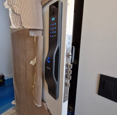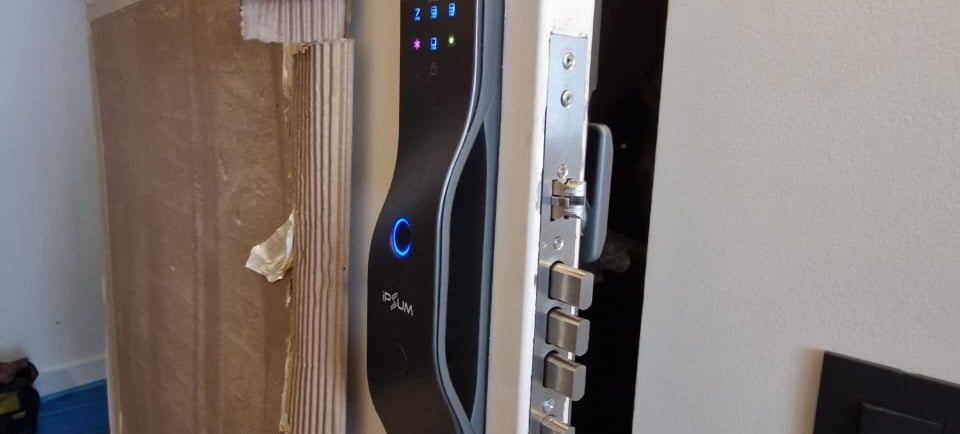 Puerta de seguridad o blindada. Es el caso más complejo y también el más importante de hacer bien. Este tipo de puerta tiene un sistema multipunto — varios pasadores que se activan con un solo movimiento — y no cualquier cerradura inteligente es compatible. La instalación requiere adaptar el mecanismo para que la cerradura digital controle todos los puntos de cierre, no solo uno. Hacerlo mal compromete toda la seguridad del sistema.